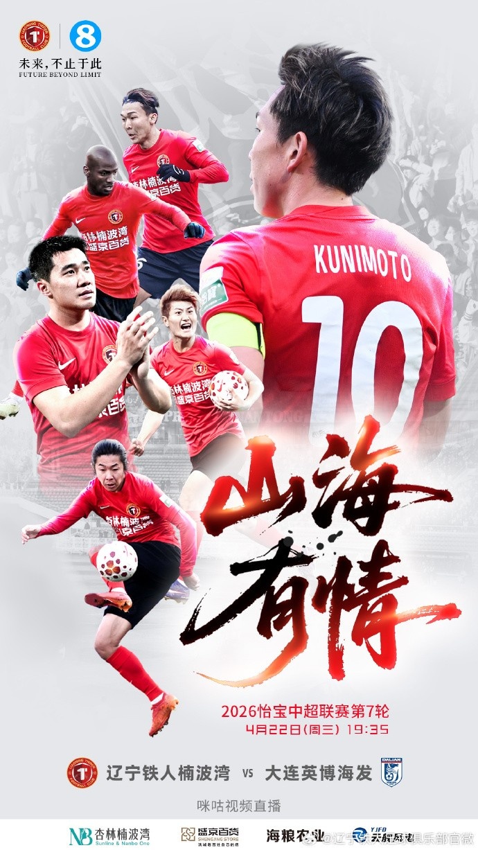 直播吧4月21日讯 中超第7轮,辽宁铁人vs大连英博,辽宁铁人赛前发布主题为“山海有情”的海报预热辽宁德比。